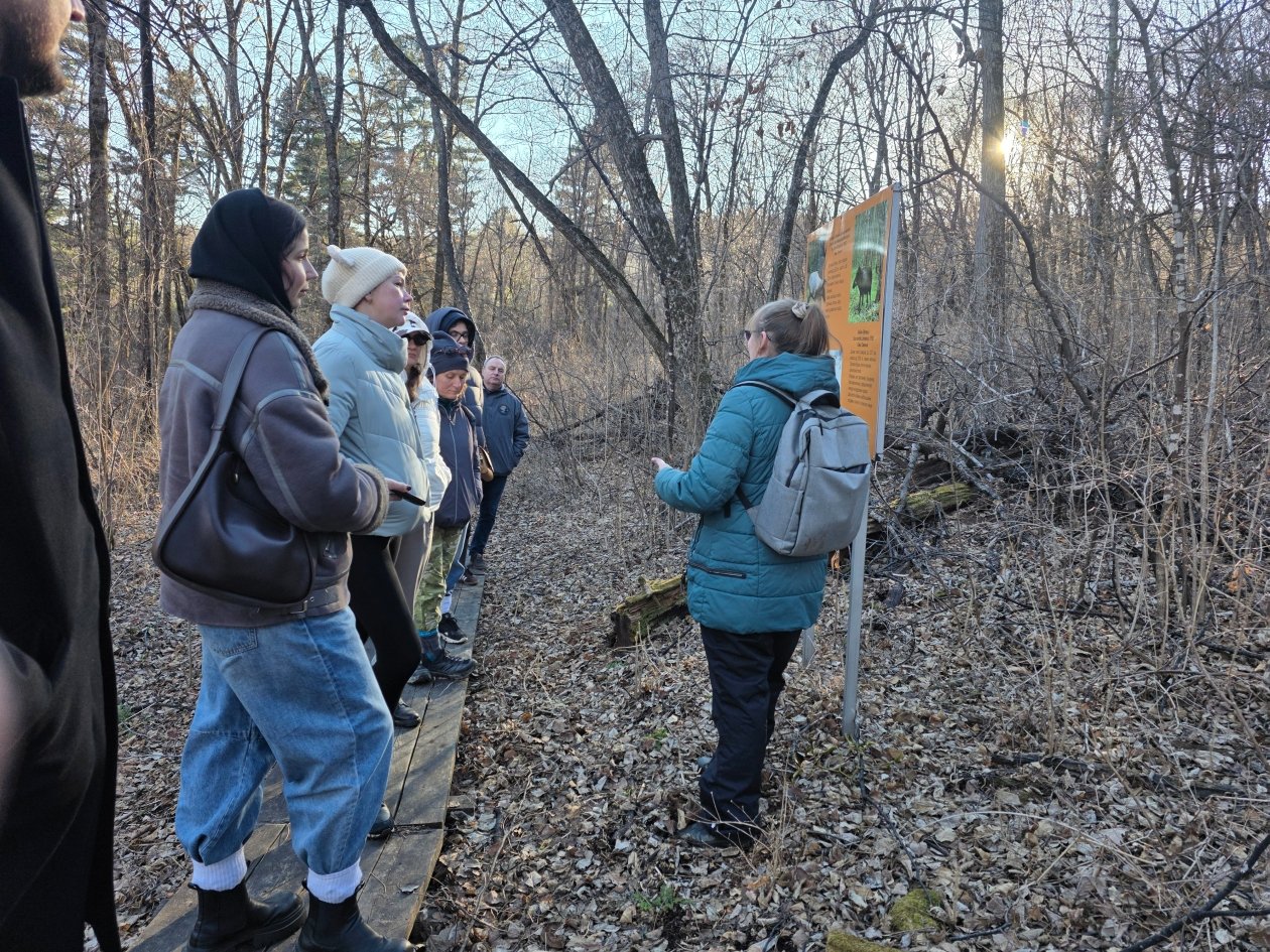 История жизни полосатых хищников на территории заповедника стала лейтмотивом прогулки. Гостям показали места регулярных выходов тигров, рассказали о методике их учёта по следам на снегу и объяснили, как фотоловушки помогают вести "перепись населения". Журналисты узнали, что "Бастак" — одна из ключевых территорий, где восстанавливается популяция краснокнижного амурского тигра.