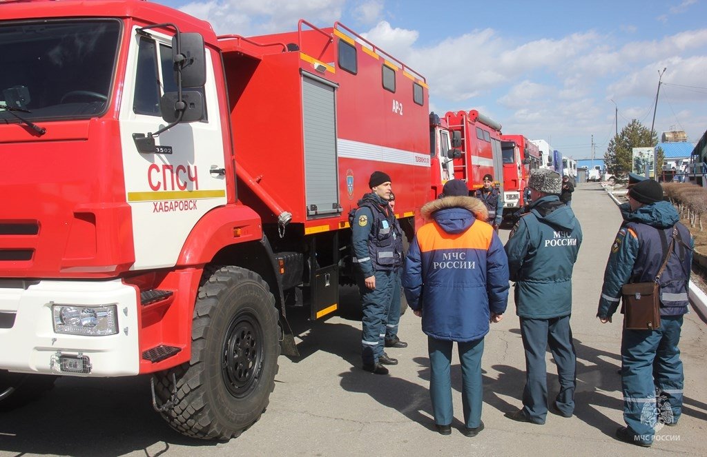 В смотре также приняла участие группа краевой аварийно-спасательной службы и противопожарной службы края. Специалисты осуществляют патрулирование части острова Большой Уссурийский, где возможен проезд автомобильной техники. Их задача — мониторинг обстановки и при выявлении возгораний оперативное реагирование на них.