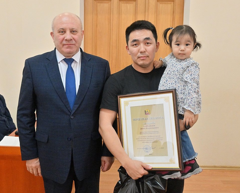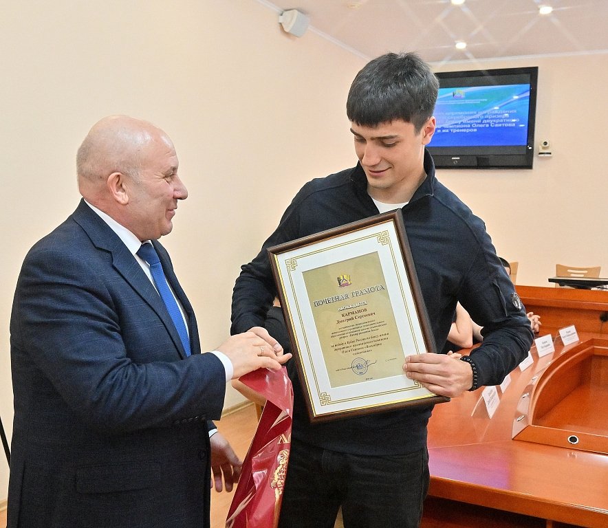 AmurMedia, 13 апреля. Мэр Хабаровска Сергей Кравчук провёл церемонию награждения победителя Кубка России по боксу Дмитрия Карманова и серебряного призёра турнира Алексея Гукова. Почётные награды также получили их наставники. Торжественное мероприятие состоялось в здании городской администрации.