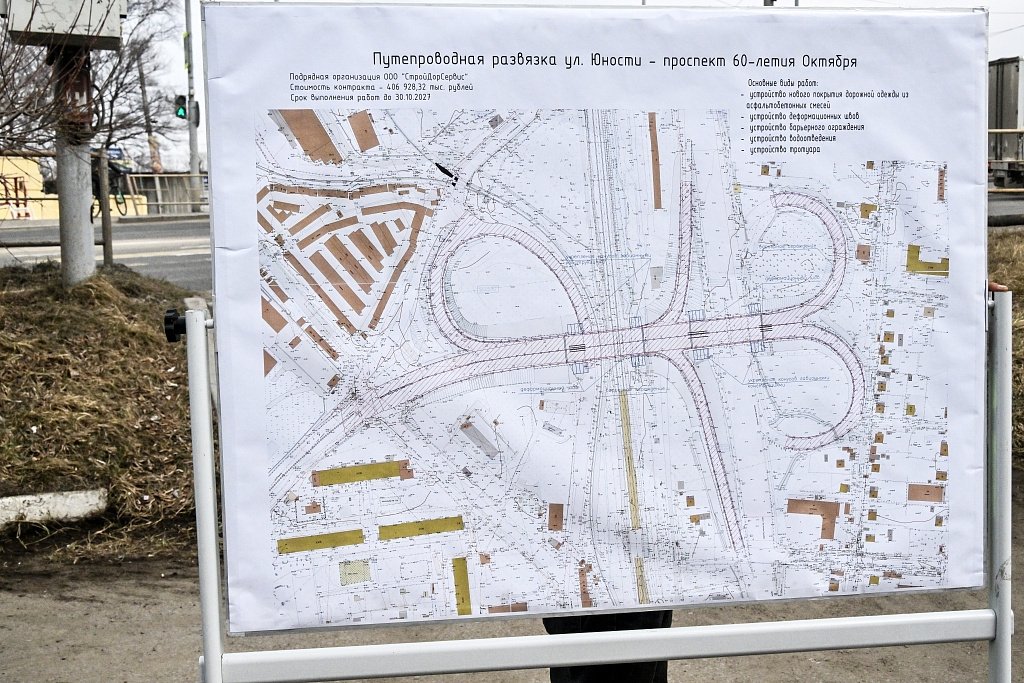 В ходе ремонта на развязке "Улица Юности — проспект 60-летия Октября" поменяют асфальтовое покрытие, будет произведено устройство деформационных швов, барьерного ограждения, водоотведения, тротуара. Стоимость контракта на работы более 400 миллионов рублей.