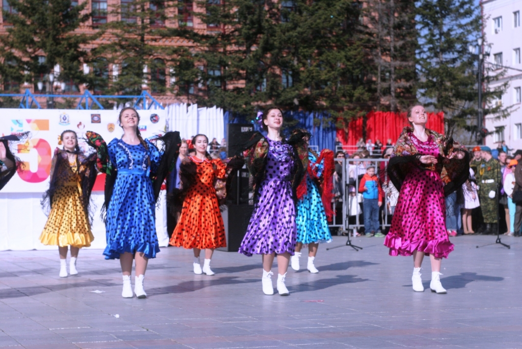 Крупный флешмоб в честь празднования 70-летней годовщины Победы в ВОВ развернули в центре Хабаровска. Жители и гости краевой столицы могли проявить себя на различных патриотических площадках и посмотреть на выступления творческих коллективов, сообщает корр. ИА AmurMedia.