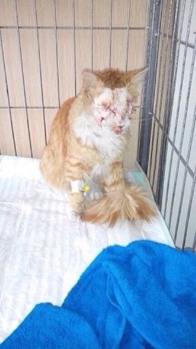 Ослепленного рыжего кота-подростка в конце прошлой недели нашла женщина, возвращающаяся с дачи на Осиновой речке домой.