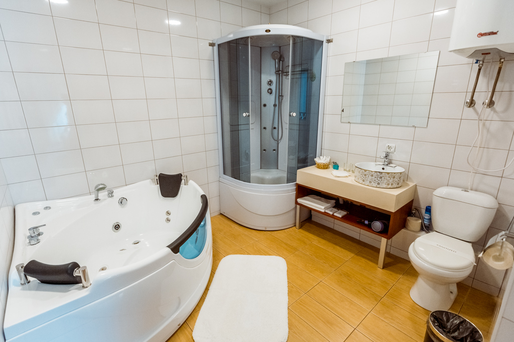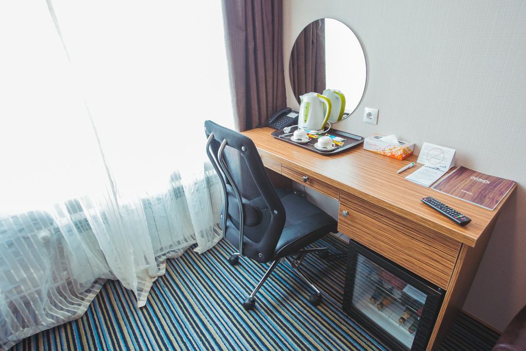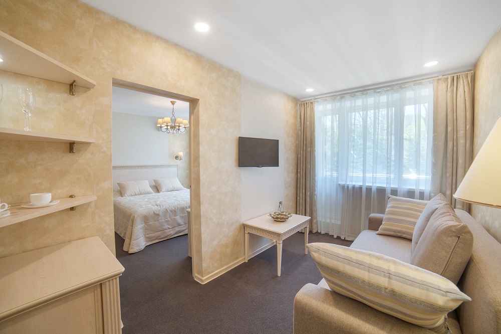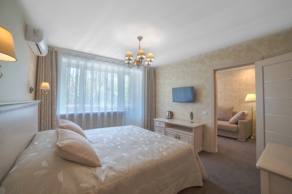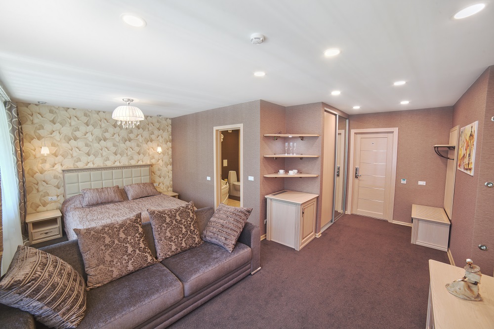Номера сочетают в себе перечень всех необходимых составляющих для комфортного и безопасного отдыха: оптимальный размер комнат, современный дизайн, эргономичная мебель, ЖК-телевизор, телефон, отопление, кондиционер, сейф, электрический чайник, бутиллированная вода, разовые гигиенические принадлежности, бесплатный WI-FI, фен, тапочки, ванная комната с душем, балкон.