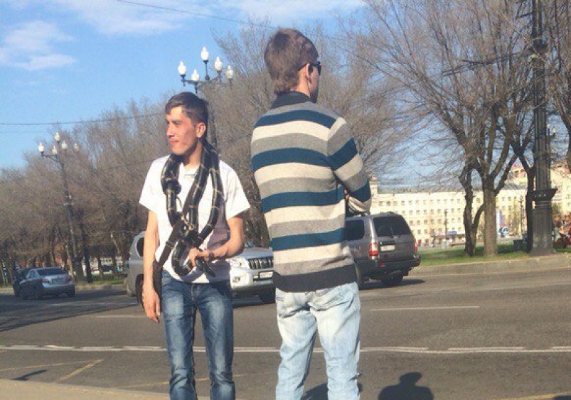 Молодого человека в обнимку с огромной змеей, разгуливающего по Хабаровску, горожане видят уже не в первый раз. Сегодня необычную парочку жители краевого центра могли наблюдать на улице Муравьева-Амурского напротив площади Славы. Причем на одной рептилии бесстрашный парень решил не останавливаться.
