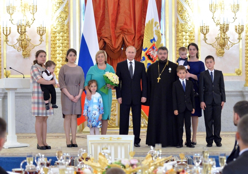 Владимир Путин в Кремле вручил ордена "Родительская слава" родителям многодетных семей. Среди удостоенных награды – семьи из Хабаровского, Алтайского, Краснодарского краёв, Калининградской, Свердловской, Тверской, Самарской областей, Ингушетии и Крыма, сообщает ИА AmurMedia со ссылкой на сайт президента.