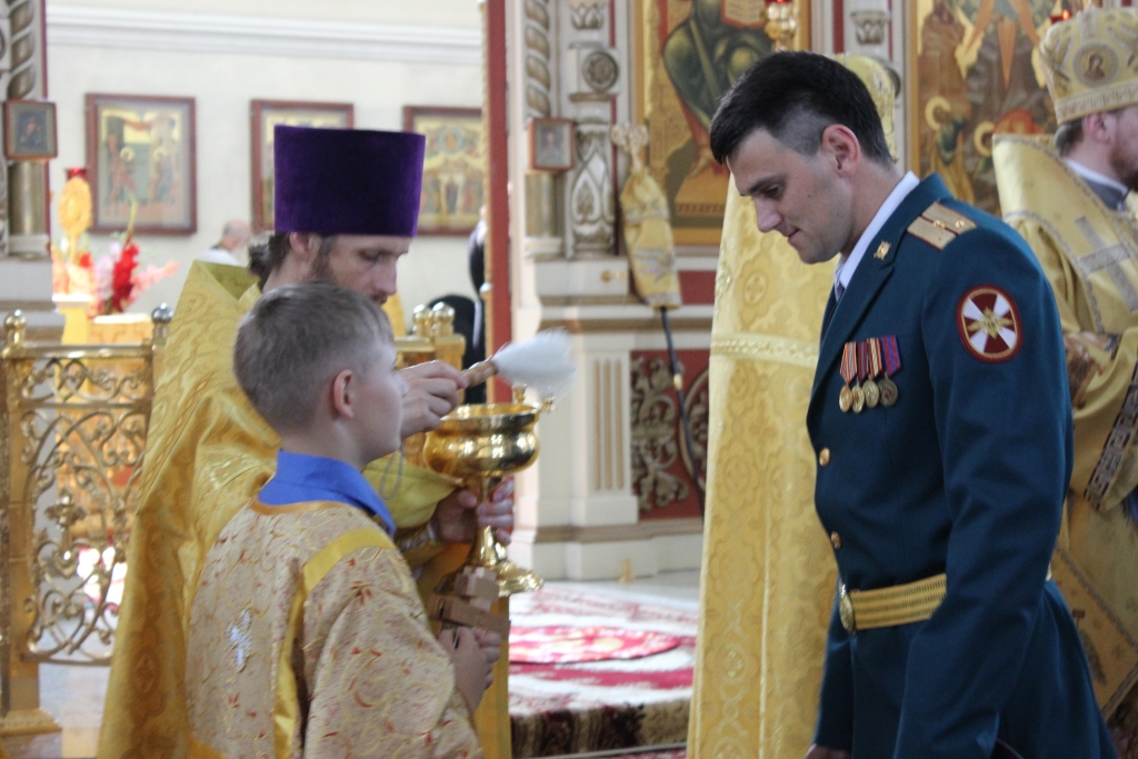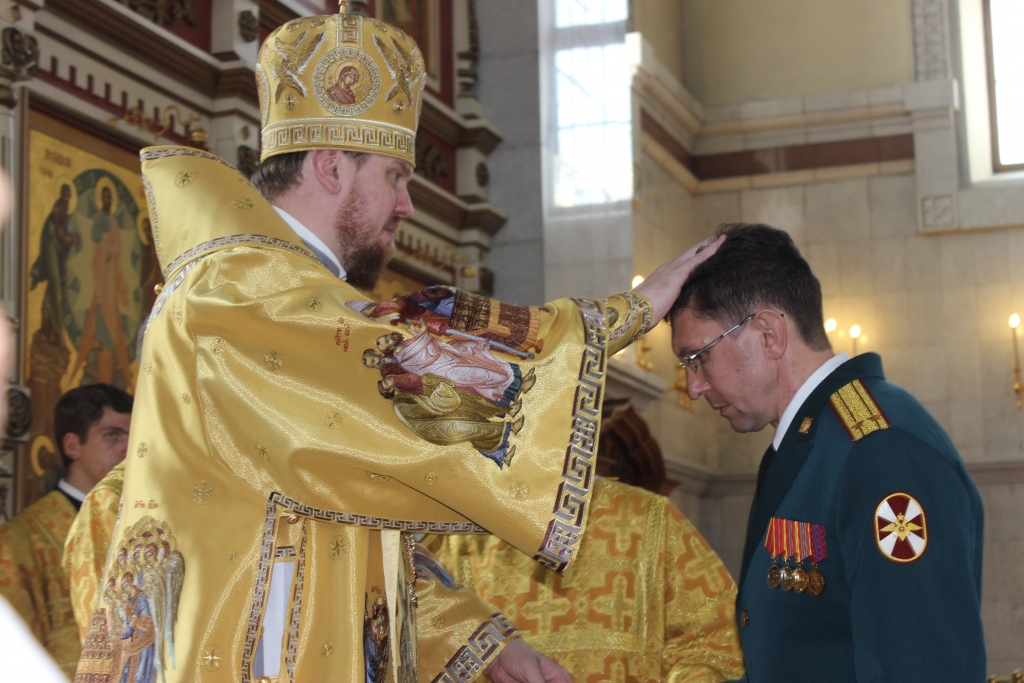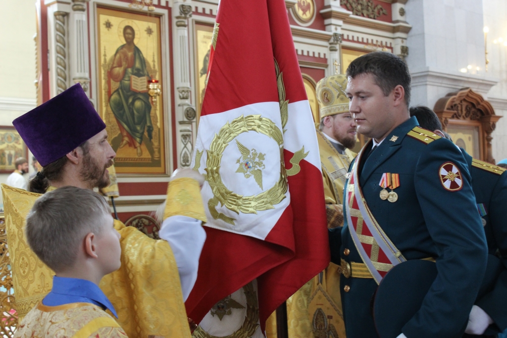 Праздничный молебен для военнослужащих внутренних войск восточно-регионального командования митрополит Хабаровский и Приамурский Владимир отслужил в Спасо-Преображенском кафедральном соборе в День Крещения Руси, сообщает корр. ИА AmurMedia.