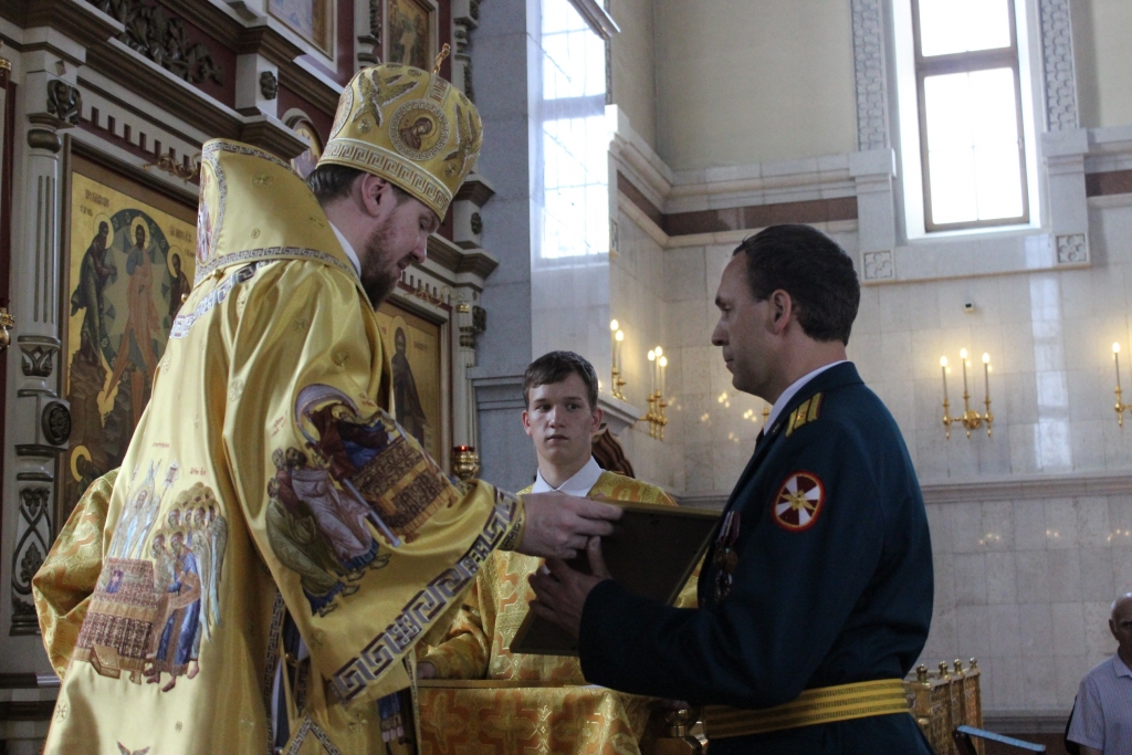 После праздничного молебна равноапостольскому князю Владимиру, который стал уже традиционным в этот день, митрополит вручил всем отличившимся офицерам восточно-регионального командования почетные грамоты.