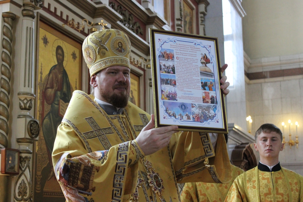 В свою очередь с благодарственной речью выступил первый заместитель командующего войсками Восточного регионального командования внутренних войск генерал-майор Владимир Долганин. А после передал правящему архиерею поздравление от Читинской епархии.