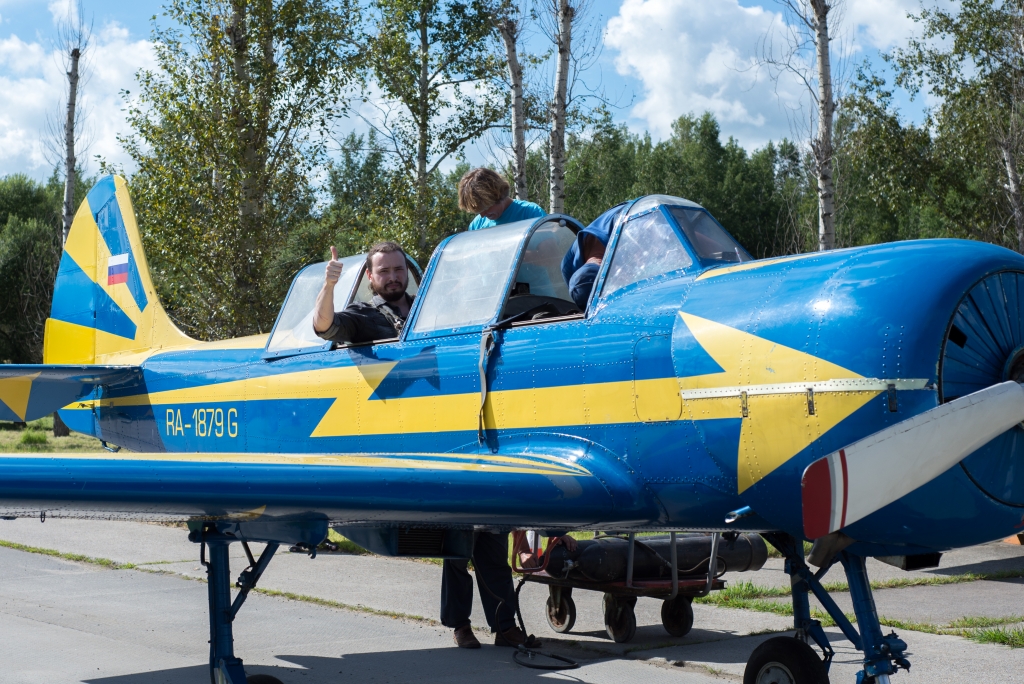 Доброго времени суток, дорогие мои читатели, сразу хочу извиниться за то, что "Мужика" давно не было на ленте. Но, думаю, новый мой рассказ с лихвой окупит длительное ожидание. Сегодня я расскажу вам об одном из наверное самых запоминающихся моих репортажей — полете с глубокими виражами на одномоторном двухместном самолете Як-52.