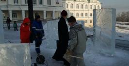 Возле главного храма Хабаровского края началось строительство ледовой композиции
