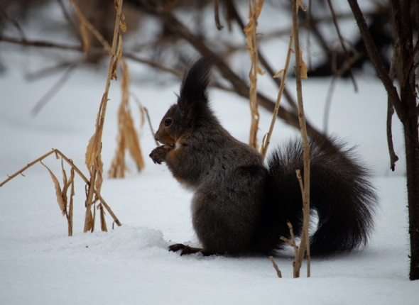 Есть тут и более крупные животные: лошади, с которыми можно познакомиться поближе и даже прикоснуться к шикарной гриве. А в закрытых амбарах зимуют пернатые: индюшки и другие птицы. В тепле отдыхают и самые маленькие обитатели — белки. Они устроились совсем рядом с баней — там у них собственный "домик", где можно заметить, как зверьки сладко спят, свернувшись клубком.