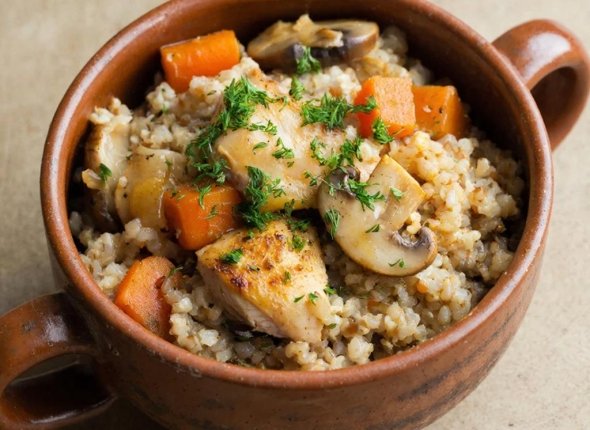 AmurMedia, 12 января. Понедельник, наступивший после долгих выходных, диктует свои правила, в том числе и в рационе питания. Еда должна быть простой, практичной, содержательной, дающей силы и удобной в употреблении. Старая, добрая гречка — отличный вариант. К ней добавим курятину, грибы и сливки. Вкус потрясающий!