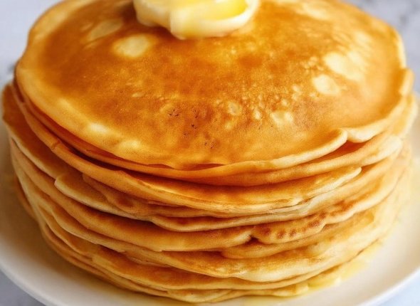 Разогрейте сковороду и выпекайте вкуснейшие блины. Каждый из них поливайте растопленным сливочным маслом. Готово!