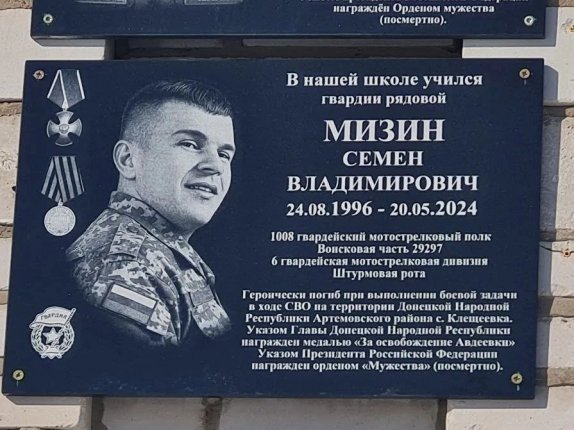 AmurMedia, 26 февраля. Мемориальную доску герою спецоперации открыли в селе Осиновая Речка Хабаровского района. Памятный знак появился на здании школы, где учился герой — Мизин Семен Владимирович, сообщает в Telegram-канале (18+) администрация муниципального района.