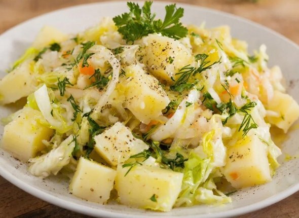 Подобный салат популярен в немецкой кухне. Рекомендуем попробовать.