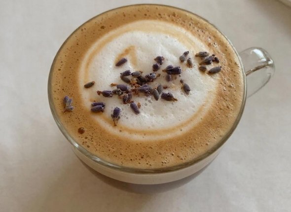 Лавандовый раф — нежный, кремовый и потрясающе ароматный, покоряет с первого глотка. Тонкая цветочная нотка деликатно подчёркивает сочетание кофе и сливок, создавая сбалансированный мягкий напиток без излишней сладости. Приготовим?
