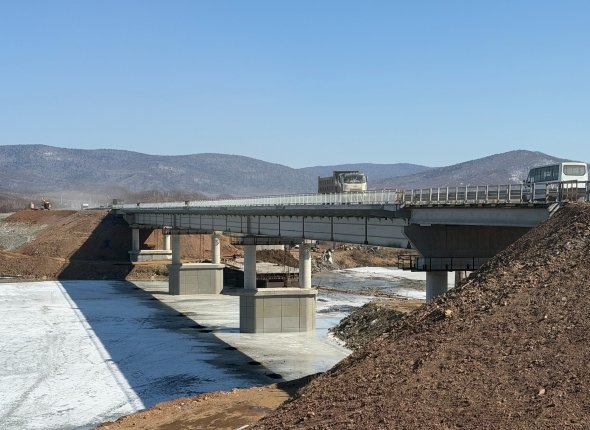 — Проект предусматривает возведение нового моста через Бикин взамен существующего. Эти работы мы выполнили, что позволило запустить рабочее движение по построенному искусственному сооружению в конце прошлого года и приступить к демонтажу старого моста. Параллельно продолжается устройство балок пролетного строения на близлежащем путепроводе через Транссиб, — отметил директор ФКУ ДСД "Дальний Восток" Сергей Петраев.