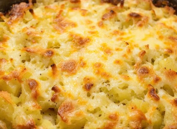 Растолките картофель со сливочным маслом и сливками. Добавьте соль и перец. Выложите на приготовленные овощи.