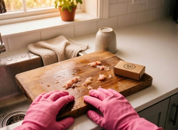 Доску сначала ополаскивают водой. Затем берут сухой горчичный порошок и буквально затирают им поверхность прямо в раковине. Процесс занимает не больше минуты — и, по отзывам, запах уходит полностью. Деревянные и пластиковые доски после этого выглядят как новые.