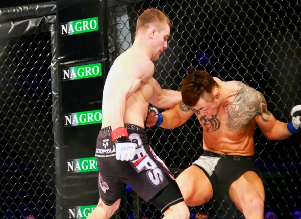 AmurMedia, 13 декабря 2015. Евгений Бэд Бой Рязанов из Хабаровска одержал победу в поединке против Евгения Семенова из Комсомольска-на-Амуре, применив против соперника болевой прием. В стенах СЗК "Платинум Арена" состоялся долгожданный турнир по панкратиону "Восточный рубеж", где силами померились 18 бойцов, при этом в пяти боях победы одержали хабаровчане, сообщает корр. ИА AmurMedia.