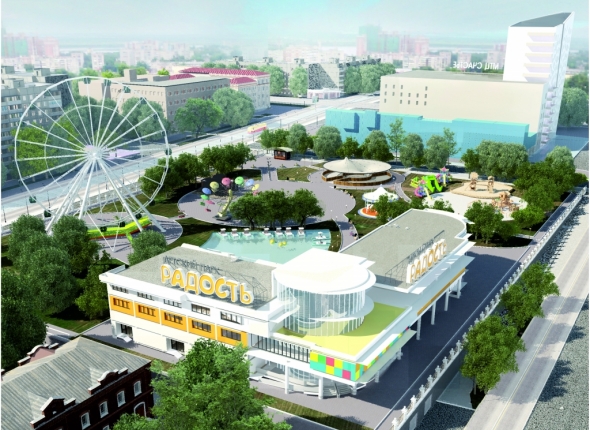 Внутри детского парка планируется возвести платные аттракционы, поставить бесплатные батуты, игровую площадку, карусели, небольшой бассейн, колесо обозрения, с которого будет открываться очень красивый вид. Также построят крытую автопарковку.