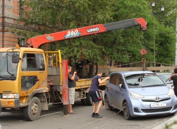 Очередную порцию "провинившихся" авто вывезли эвакуаторы в центре Хабаровска