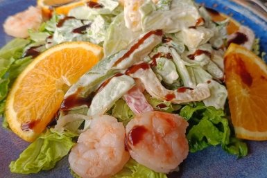 Салат с креветками и овощами: минимум калорий, а сытость на весь день - всего за 20 минут