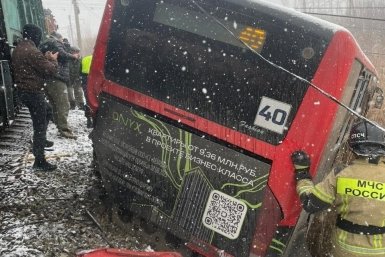 Поезд столкнулся с пассажирским автобусом в Хабаровске (ФОТО, ОБНОВЛЕНИЕ)
