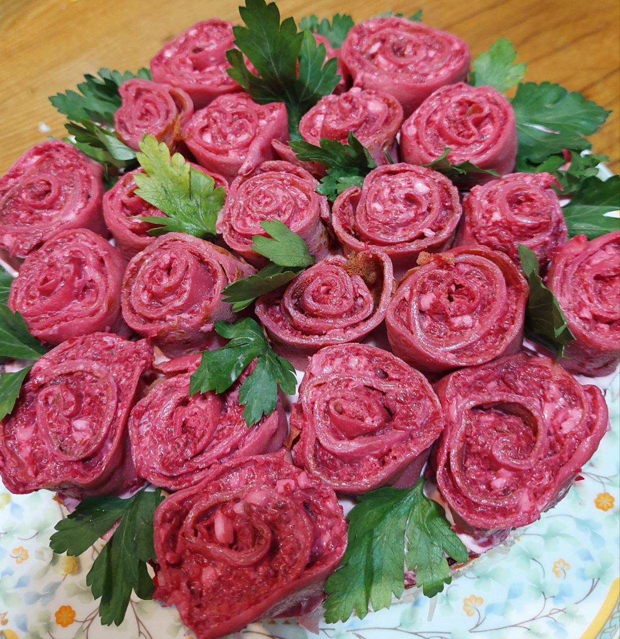 Селёдка под шубой по-новому: необычный вариант новогодней классики с розами из блинов