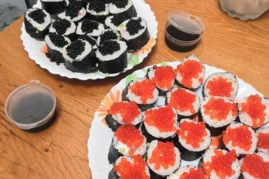 Домашние роллы с шапочкой из красной и чёрной икры - роскошная закуска на Новый год